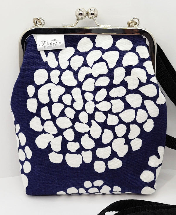 Olkalaukun kuviointi vaihtelee kankaan kuosin mukaan.