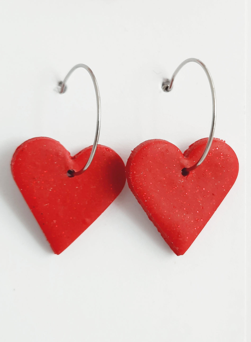 Sydän on valmistettu polymeerimassasta ja rengas on ruostumatonta terästä. Renkaan halkaisija on 2 cm ja sydän on 2 cm korkea. Sydämessä on vähän kimallusta ja korvikset ovat kevyet ja kestävät.