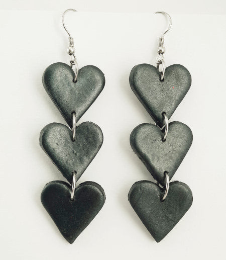 Korvakorut on valmistettu polymeerimassasta ja osat on ruostumatonta terästä. Riipusosan pituus ilman koukkua on 6 cm. Sydämissä on helmiäisen hohdetta ja korvakorut ovat kevyet ja kestävät.